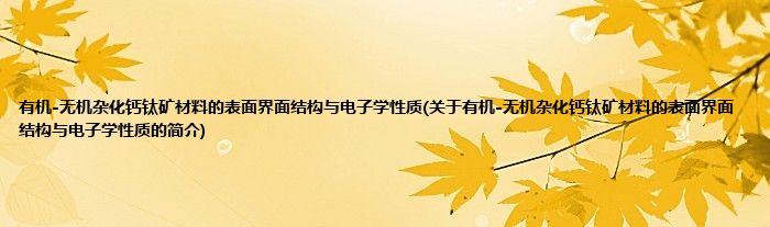 本文关于有机-无机杂化钙钛矿材料的表面界面结构与电子学性质的简介就讲解完毕,希望对大家有所帮助。