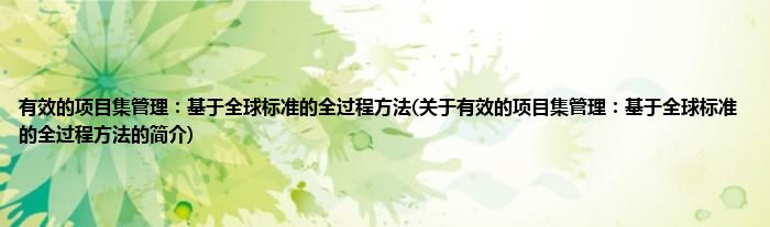 大家好,有效的项目集管理:基于全球标准的全过程方法,关于有效的项目集管理:基于全球标准的全过程方法的简介很多人还不知道,现在让我们一起来看看吧!