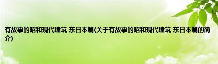 本文关于有故事的昭和现代建筑 东日本篇的简介就讲解完毕,希望对大家有所帮助。