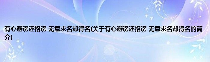本文关于有心避谤还招谤,无意求名却得名的简介就讲解完毕,希望对大家有所帮助。