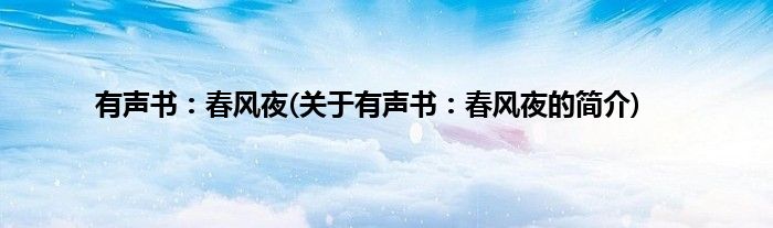 本文关于有声书:春风夜的简介就讲解完毕,希望对大家有所帮助。