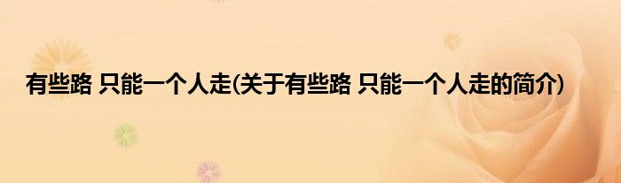 本文关于有些路,只能一个人走的简介就讲解完毕,希望对大家有所帮助。