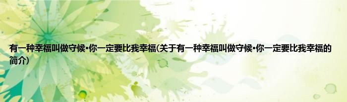 大家好,有一种幸福叫做守候·你一定要比我幸福,关于有一种幸福叫做守候·你一定要比我幸福的简介很多人还不知道,现在让我们一起来看看吧!