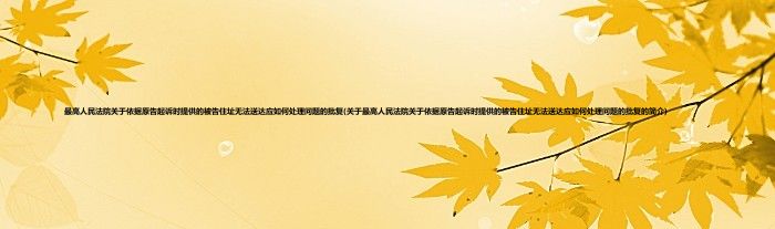 大家好,最高人民法院关于依据原告起诉时提供的被告住址无法送达应如何处理问题的批复,关于最高人民法院关于依据原告起诉时提供的被告住址无法送达应如何处理问题的批复的简介很多人还不知道,现在让我们一起来看看吧!