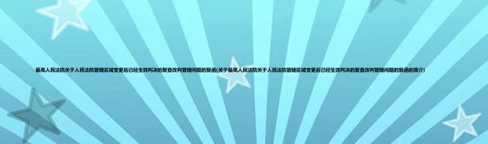 大家好,最高人民法院关于人民法院管辖区域变更后已经生效判决的复查改判管辖问题的复函,关于最高人民法院关于人民法院管辖区域变更后已经生效判决的复查改判管辖问题的复函的简介很多人还不知道,现在让我们一起来看看吧!
