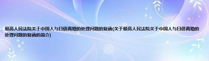 大家好,最高人民法院关于中国人与日侨离婚的处理问题的复函,关于最高人民法院关于中国人与日侨离婚的处理问题的复函的简介很多人还不知道,现在让我们一起来看看吧!