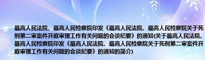 本文关于最高人民法院、最高人民检察院印发《最高人民法院、最高人民检察院关于死刑第二审案件开庭审理工作有关问题的会谈纪要》的通知的简介就讲解完毕,希望对大家有所帮助。