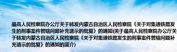 本文关于最高人民检察院办公厅关于转发内蒙古自治区人民检察院《关于对集通铁路发生的刑事案件管辖问题补充请示的批复》的通知的简介就讲解完毕,希望对大家有所帮助。