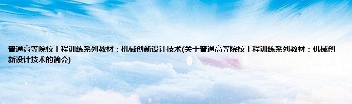 本文关于普通高等院校工程训练系列教材:机械创新设计技术的简介就讲解完毕,希望对大家有所帮助。