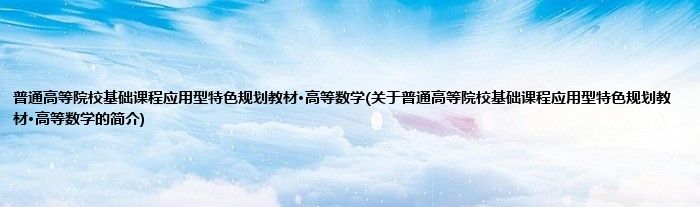 本文关于普通高等院校基础课程应用型特色规划教材·高等数学的简介就讲解完毕,希望对大家有所帮助。