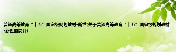 本文关于普通高等教育“十五”国家级规划教材·新世的简介就讲解完毕,希望对大家有所帮助。