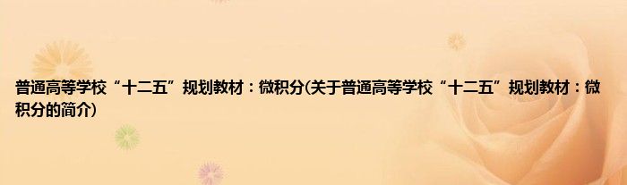 本文关于普通高等学校“十二五”规划教材:微积分的简介就讲解完毕,希望对大家有所帮助。