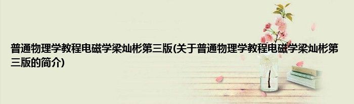 本文关于普通物理学教程电磁学梁灿彬第三版的简介就讲解完毕,希望对大家有所帮助。