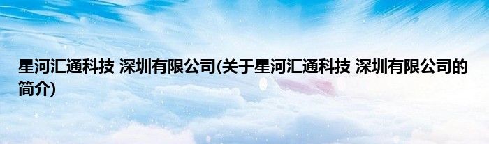 本文关于星河汇通科技 深圳有限公司的简介就讲解完毕,希望对大家有所帮助。