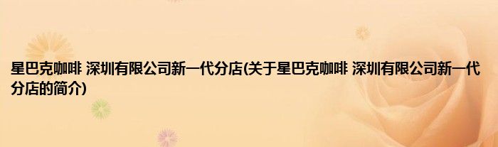大家好,星巴克咖啡 深圳有限公司新一代分店,关于星巴克咖啡 深圳有限公司新一代分店的简介很多人还不知道,现在让我们一起来看看吧!
