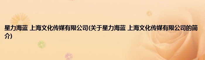 本文关于星力海蓝 上海文化传媒有限公司的简介就讲解完毕,希望对大家有所帮助。