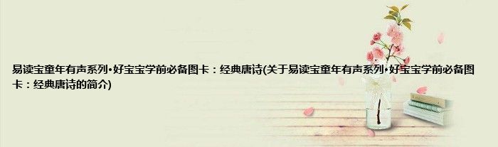 本文关于易读宝童年有声系列·好宝宝学前必备图卡:经典唐诗的简介就讲解完毕,希望对大家有所帮助。