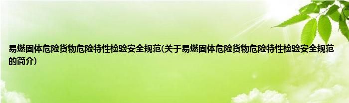 本文关于易燃固体危险货物危险特性检验安全规范的简介就讲解完毕,希望对大家有所帮助。