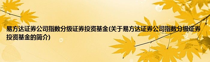 易方达证券公司指数分级证券投资基金(关于易方达证券公司指数分级证券投资基金的简介)