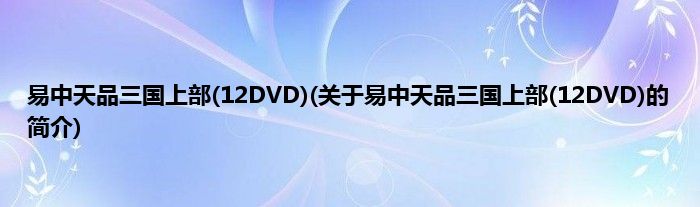 1、 《易中天品三国上部(12DVD)》是2010年由中国国际电视总公司出版的DVD影碟。