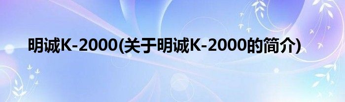 大家好,明诚K-2000,关于明诚K-2000的简介很多人还不知道,现在让我们一起来看看吧!