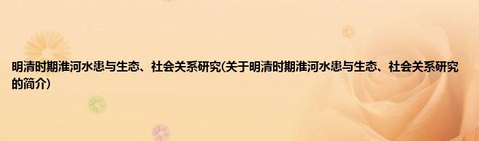 本文关于明清时期淮河水患与生态、社会关系研究的简介就讲解完毕,希望对大家有所帮助。