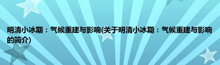 大家好,明清小冰期:气候重建与影响,关于明清小冰期:气候重建与影响的简介很多人还不知道,现在让我们一起来看看吧!