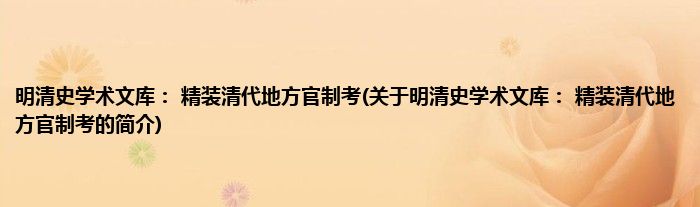本文关于明清史学术文库: 精装清代地方官制考的简介就讲解完毕,希望对大家有所帮助。