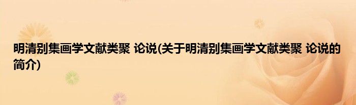 大家好,明清别集画学文献类聚 论说,关于明清别集画学文献类聚 论说的简介很多人还不知道,现在让我们一起来看看吧!