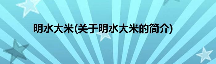 本文关于明水大米的简介就讲解完毕,希望对大家有所帮助。