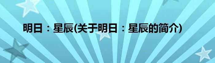 大家好,明日:星辰,关于明日:星辰的简介很多人还不知道,现在让我们一起来看看吧!