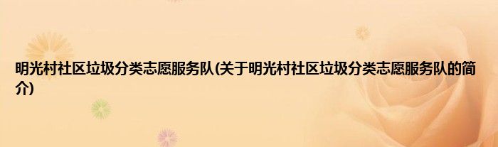 大家好,明光村社区垃圾分类志愿服务队,关于明光村社区垃圾分类志愿服务队的简介很多人还不知道,现在让我们一起来看看吧!