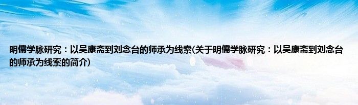 大家好,明儒学脉研究:以吴康斋到刘念台的师承为线索,关于明儒学脉研究:以吴康斋到刘念台的师承为线索的简介很多人还不知道,现在让我们一起来看看吧!