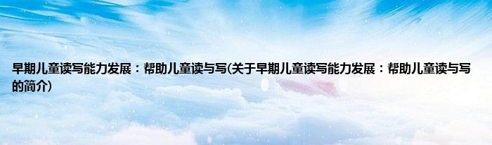 大家好,早期儿童读写能力发展:帮助儿童读与写,关于早期儿童读写能力发展:帮助儿童读与写的简介很多人还不知道,现在让我们一起来看看吧!