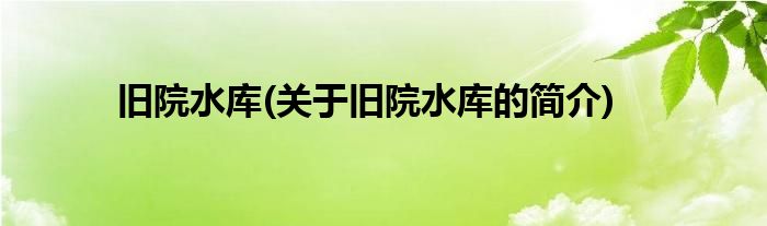 大家好,旧院水库,关于旧院水库的简介很多人还不知道,现在让我们一起来看看吧!