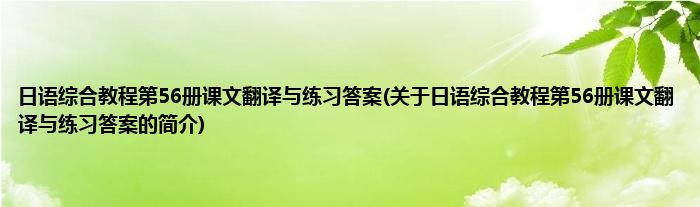 大家好,日语综合教程第56册课文翻译与练习答案,关于日语综合教程第56册课文翻译与练习答案的简介很多人还不知道,现在让我们一起来看看吧!