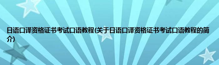 大家好,日语口译资格证书考试口语教程,关于日语口译资格证书考试口语教程的简介很多人还不知道,现在让我们一起来看看吧!