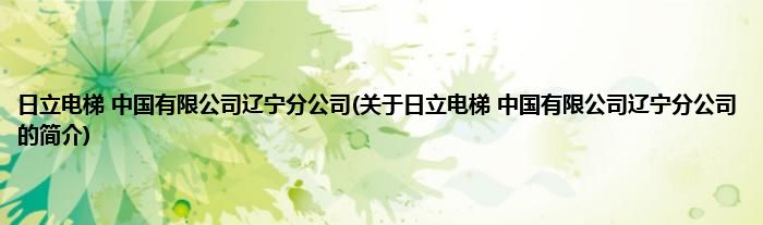 日立电梯中国有限公司辽宁分公司(关于日立电梯中国有限公司辽宁分公司的简介)