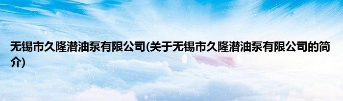 本文关于无锡市久隆潜油泵有限公司的简介就讲解完毕,希望对大家有所帮助。
