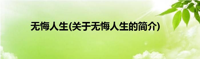本文关于无悔人生的简介就讲解完毕,希望对大家有所帮助。