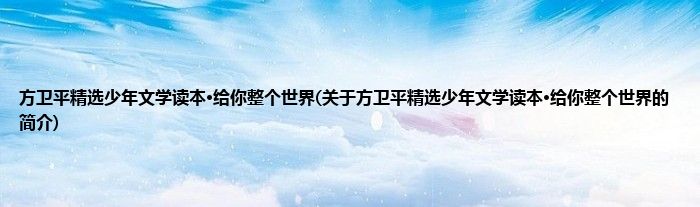 本文关于方卫平精选少年文学读本·给你整个世界的简介就讲解完毕,希望对大家有所帮助。