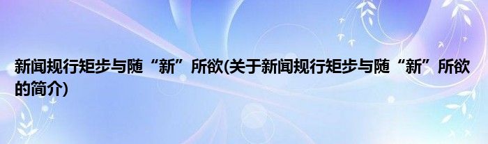 本文关于新闻规行矩步与随“新”所欲的简介就讲解完毕,希望对大家有所帮助。
