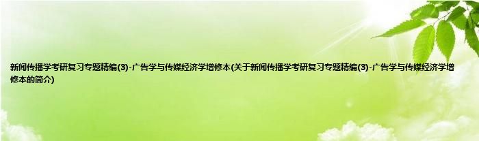 大家好,新闻传播学考研复习专题精编,3-广告学与传媒经济学增修本,关于新闻传播学考研复习专题精编,3-广告学与传媒经济学增修本的简介很多人还不知道,现在让我们一起来看看吧!