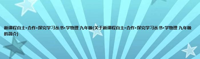 本文关于新课程自主·合作·探究学习丛书·学物理 九年级的简介就讲解完毕,希望对大家有所帮助。