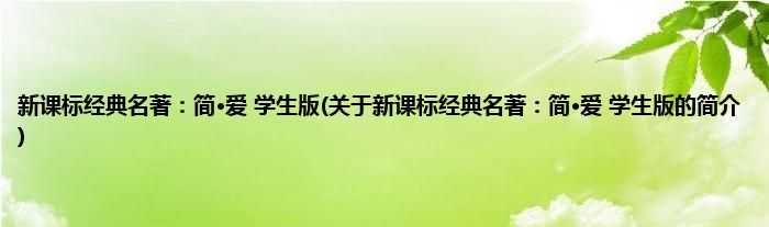 本文关于新课标经典名著:简·爱 学生版的简介就讲解完毕,希望对大家有所帮助。