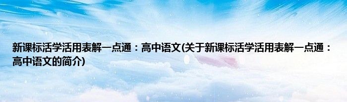 本文关于新课标活学活用表解一点通:高中语文的简介就讲解完毕,希望对大家有所帮助。