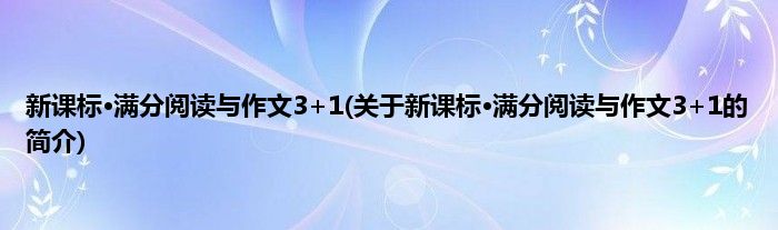 本文关于新课标·满分阅读与作文3+1的简介就讲解完毕,希望对大家有所帮助。