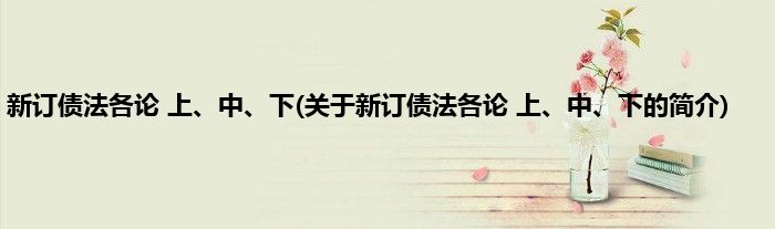 本文关于新订债法各论 上、中、下的简介就讲解完毕,希望对大家有所帮助。