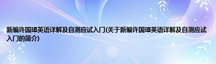 本文关于新编许国璋英语详解及自测应试入门的简介就讲解完毕,希望对大家有所帮助。