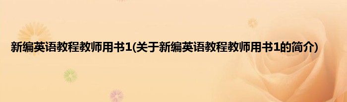 大家好,新编英语教程教师用书1,关于新编英语教程教师用书1的简介很多人还不知道,现在让我们一起来看看吧!